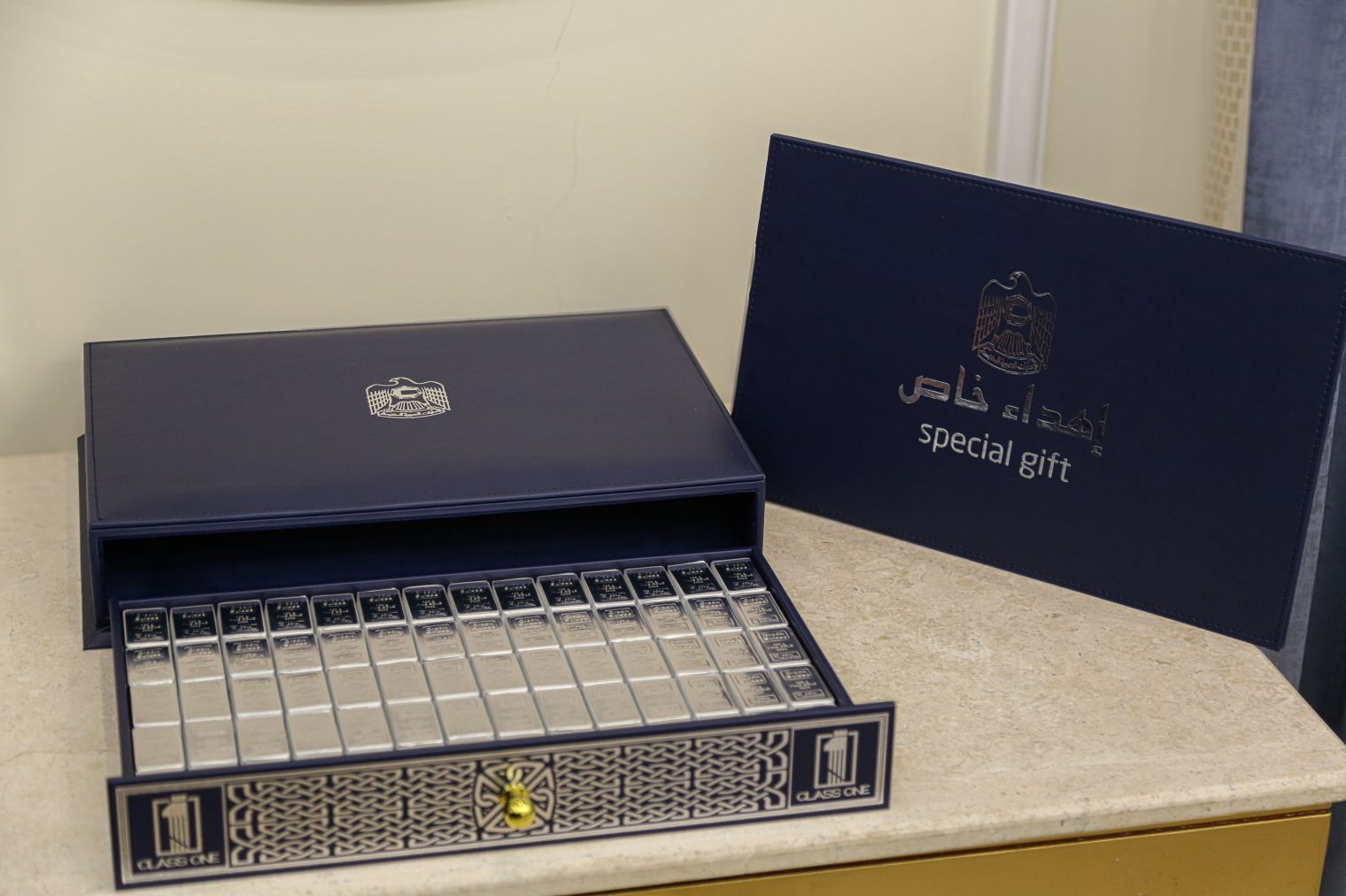 • A refined box made of premium leather